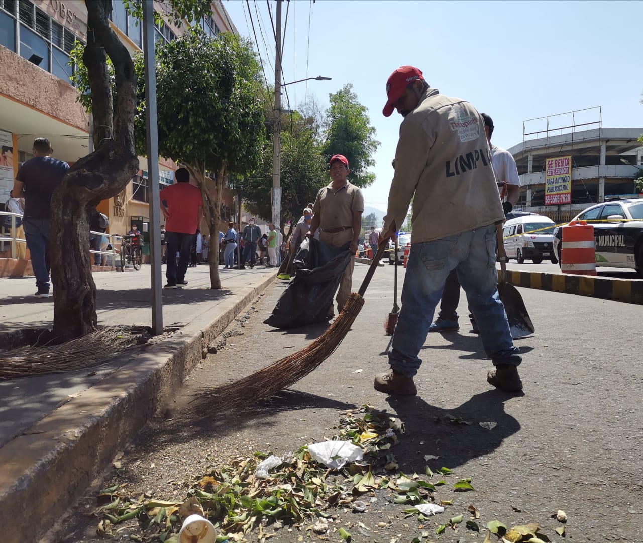 Se llev贸 a cabo la sanitizaci贸n de calles y avenidas aleda帽as, trabajos de barrido, limpieza, balizamiento, poda de 谩rboles, recolecci贸n de basura y se invit贸 a conductores a quitar sus veh铆culos estacionados para dar mayor movilidad.