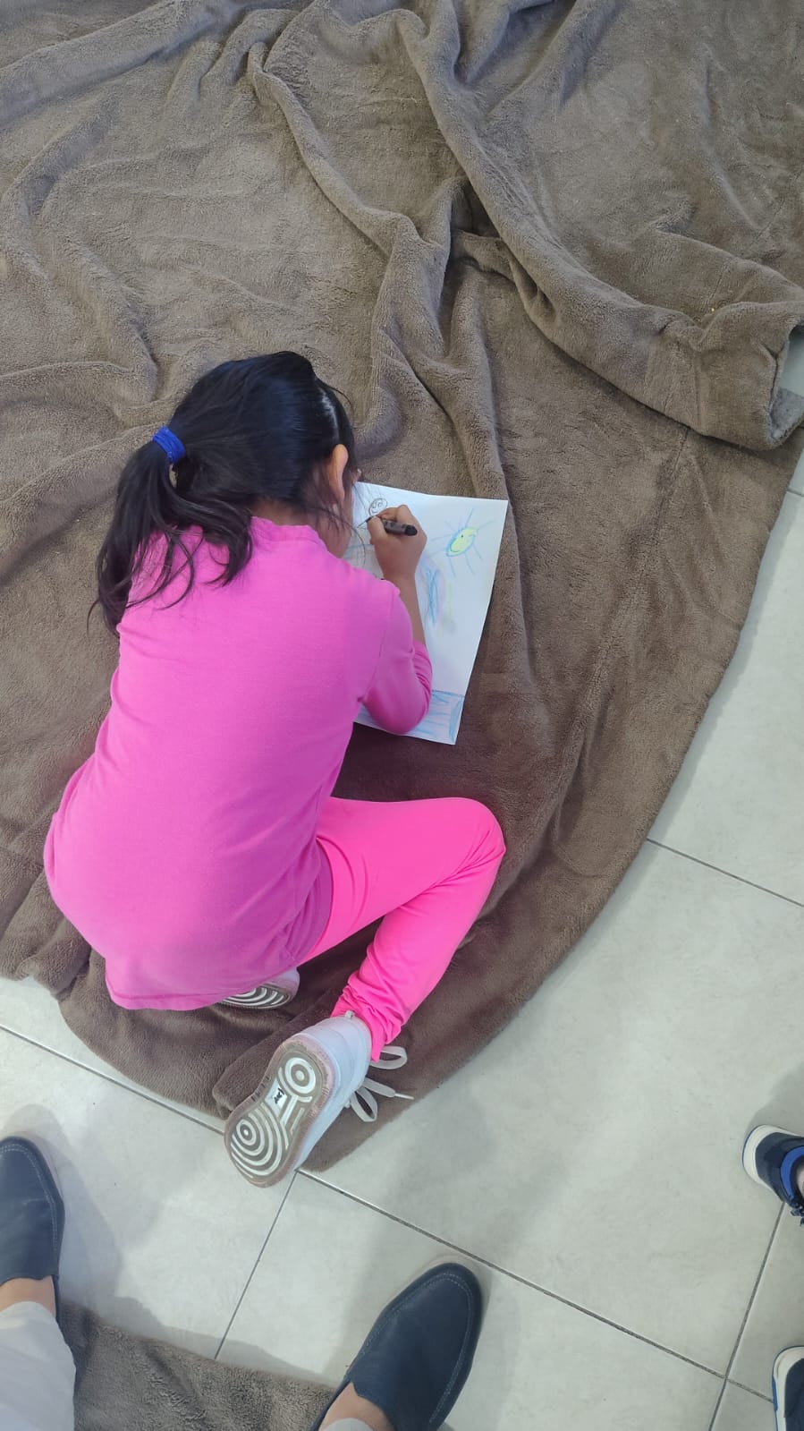 Esos dibujos fueron muy reveladores porque mostraban su felicidad y disfrutaban, con su actividad, todos son muy amorosos, se acercan a los asistentes los abrazan, y les da mucha curiosidad los celulares, como la pequeña Maria Fernanda, que me pidió el teléfono y le encantó ver imágenes de caricaturas.