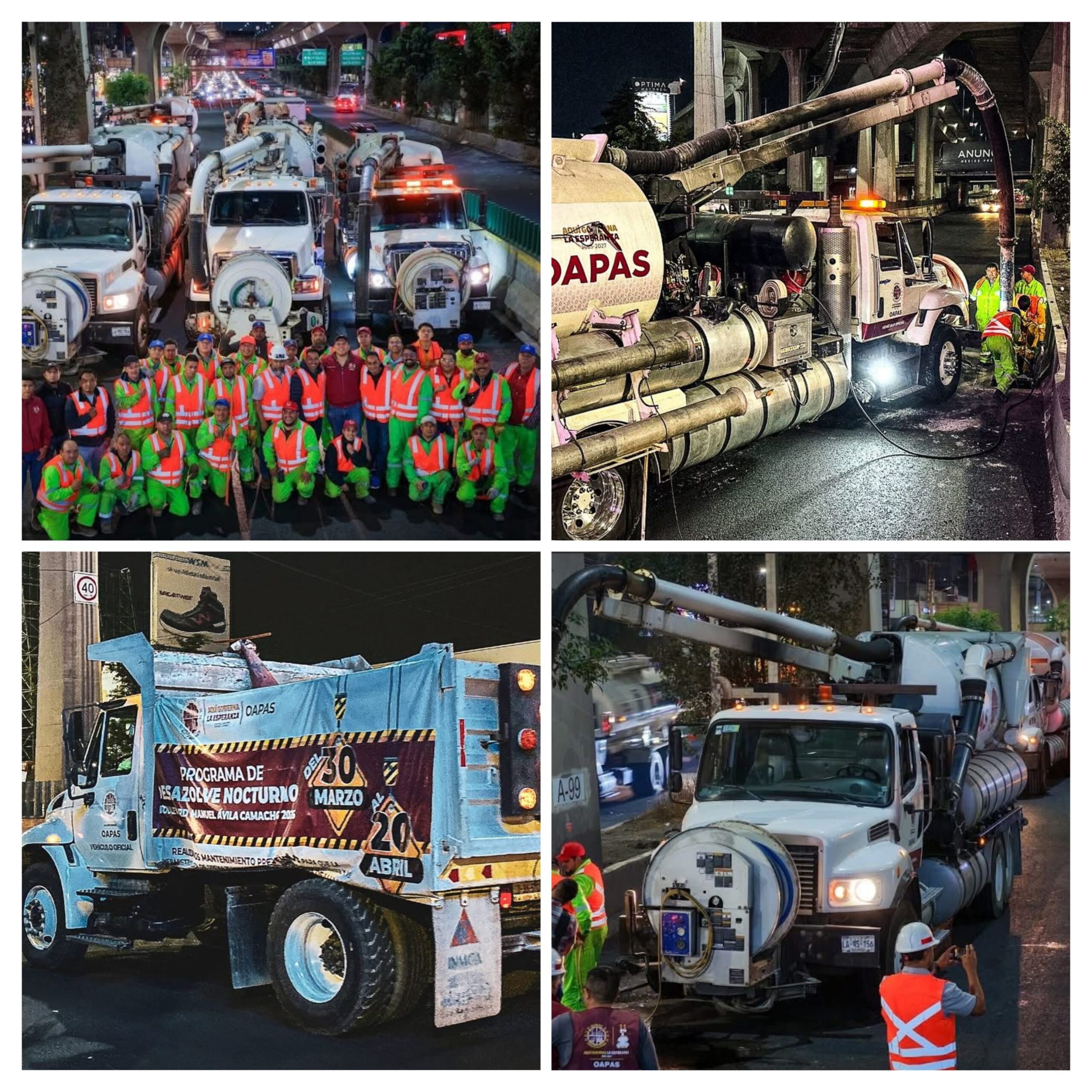 Personal del Organismo de Agua Municipal OAPAS, realiza los trabajos por la noche para evitar afectaciones viales y disminuir el impacto por las emisiones de CO2.