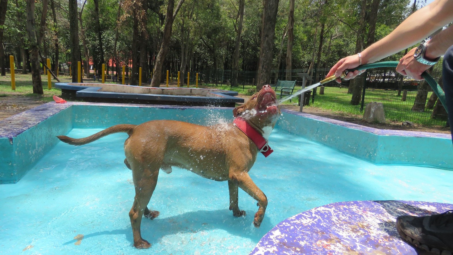Otra parte muy importante es la zona para perros en la cual los pueden traer a que corran, jueguen e incluso se den un chapuzón en la alberca especial para los peluditos. El sitio fue rescatado pues estaba en completo abandono, de donde sacaron 36 bolsas enormes de heces fecales.