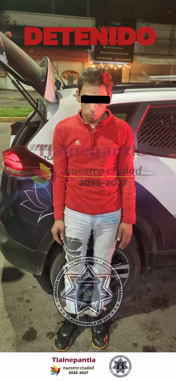 Policías adscritos a la Comisaría General de Proximidad y Seguridad Ciudadana de Tlalnepantla,  cumplían con un recorrido de vigilancia preventiva, cuando detuvieron al sujeto por el probable delito de robo al patrimonio de las personas.