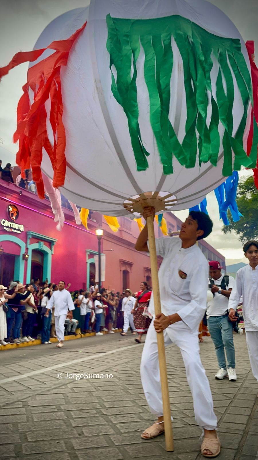 De verdad fue algo maravilloso y vibrante ver el Desfile de las Ocho Regiones de Oaxaca, conformado por hombres y mujeres ataviados con trajes llenos de color, plumas, algunos más sobrios que otros, invadidos por la total algarabía, pero otros en total en silencio. Nos explicaron que hay regiones muy espirituales, por ello su caminar en el desfile fue muy solemne.