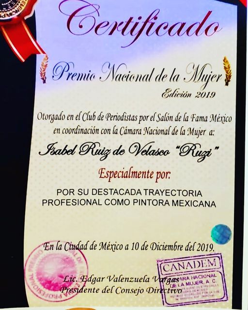 Ruzi es una gran artista plástica, pero también extraordinaria persona que le gusta donar sus obras con causa, por lo que han extendido reconocimientos la Asociación Internacional de Artistas Plásticas, la UNESCO, a la Asociación de Artes Plásticas de México ARTAC y la Fundación Ecologista Totomej Sanili. También recibió Premio Nacional de la Mujer 2019 Otorgado del Club de Periodistas Por el Salón de la Fama México.