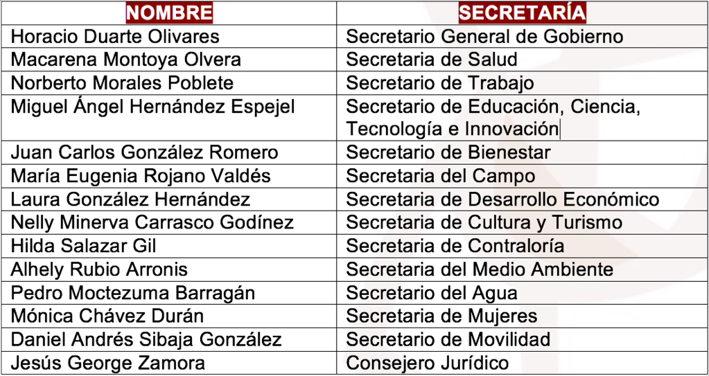 En lo que fue su primer acto de gobierno, el 16 de septiembre, Gómez Álvarez, al convertirse en la primera mujer gobernadora del Estado de México, pasó lista a los primeros funcionarios quienes hicieron la promesa de gobernar con honestidad, lealtad y compromiso para los mexiquenses, como Horacio Duarte, que estará al frente de la Secretaría de Gobierno.