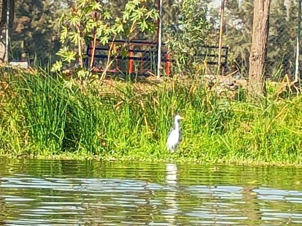 La ejecutiva de Boehringer invitó a disfrutar, con plena conciencia, el lugar, un paraíso que inicia al lado de la pista de canotaje, y al que llegas tras ver y oír varias especies de garzas y otras aves en una lancha que un remero impulsa desde atrás con toda la fuerza de su cuerpo, clavando una gran vara en el agua y fondo lodoso del canal de la Virgen.