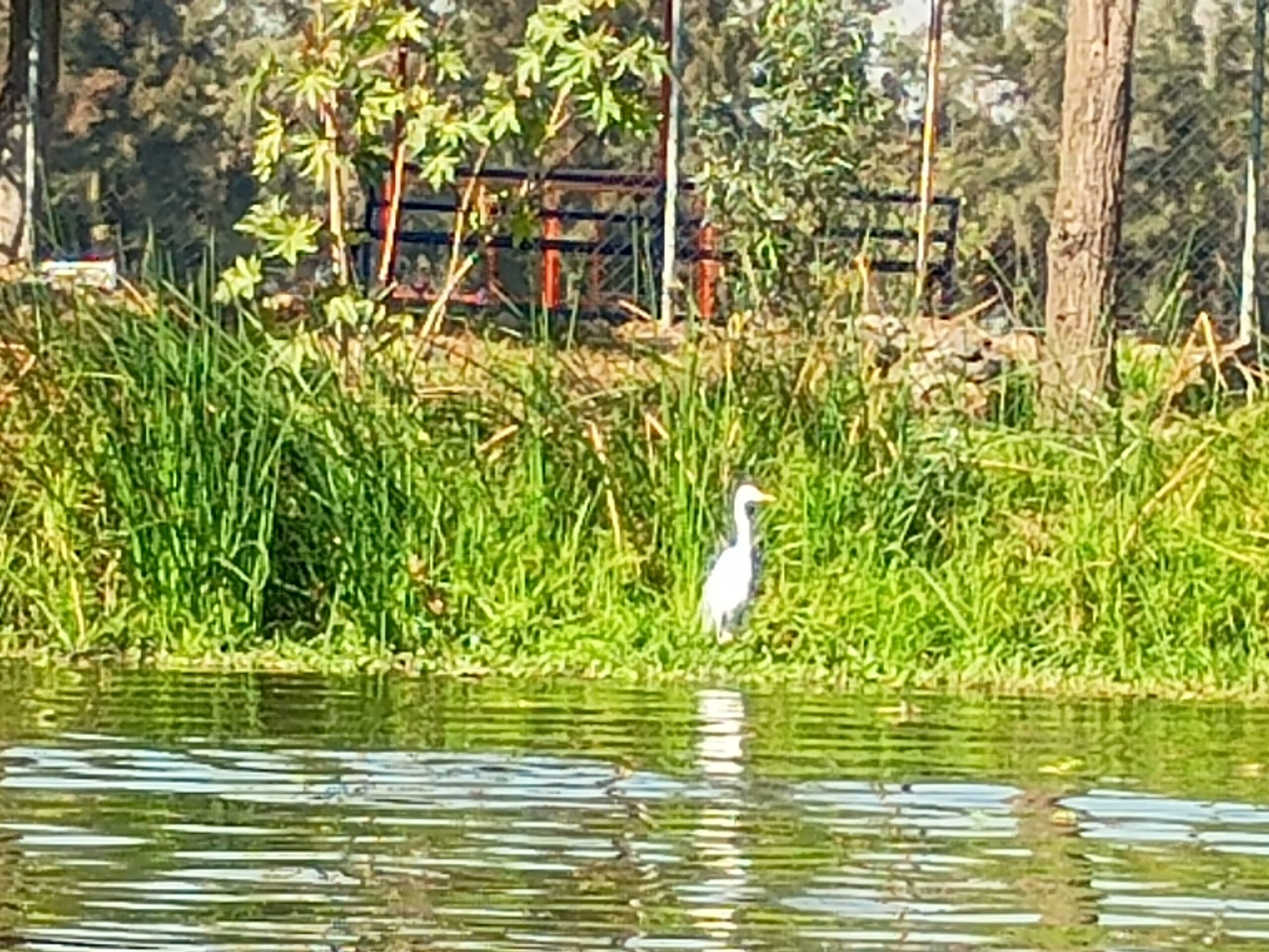 La ejecutiva de Boehringer invitó a disfrutar, con plena conciencia, el lugar, un paraíso que inicia al lado de la pista de canotaje, y al que llegas tras ver y oír varias especies de garzas y otras aves en una lancha que un remero impulsa desde atrás con toda la fuerza de su cuerpo, clavando una gran vara en el agua y fondo lodoso del canal de la Virgen.