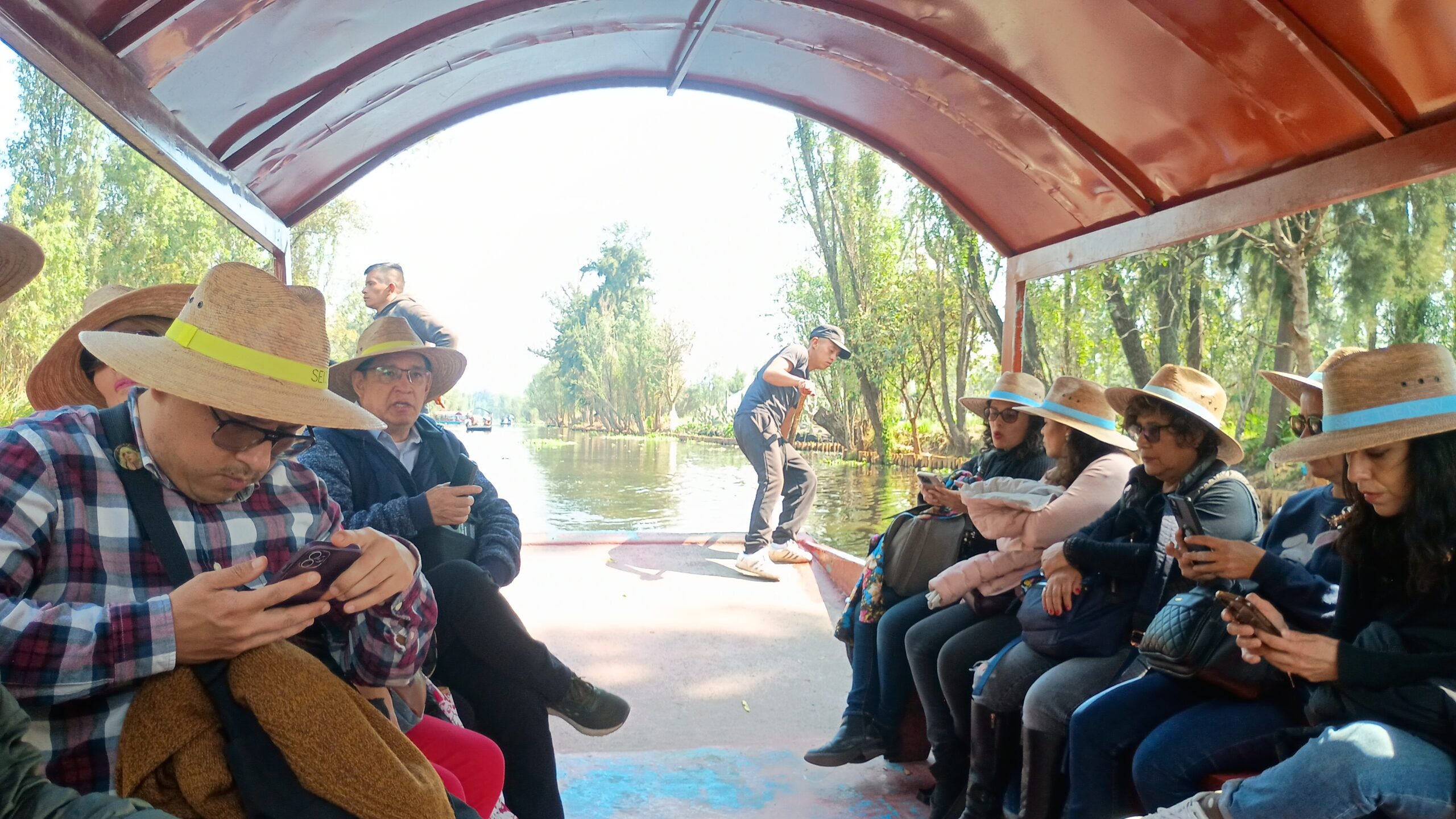 Antes de llegar a la chinampa, Daniela nos explicó, a través del canal de la Virgen que las chinampas están hechas a base de estructuras de varas y tule, lodos, tierra volcánica, y rodeadas de árboles ahuejotes para evitar erosión.